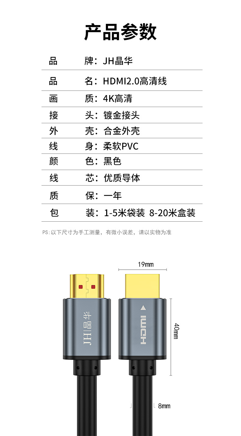 Jinghua HDTV2.0 バージョン高精細ケーブル卸売コンピュータ TV モニター接続ケーブル hdmi 工場モニター 4K