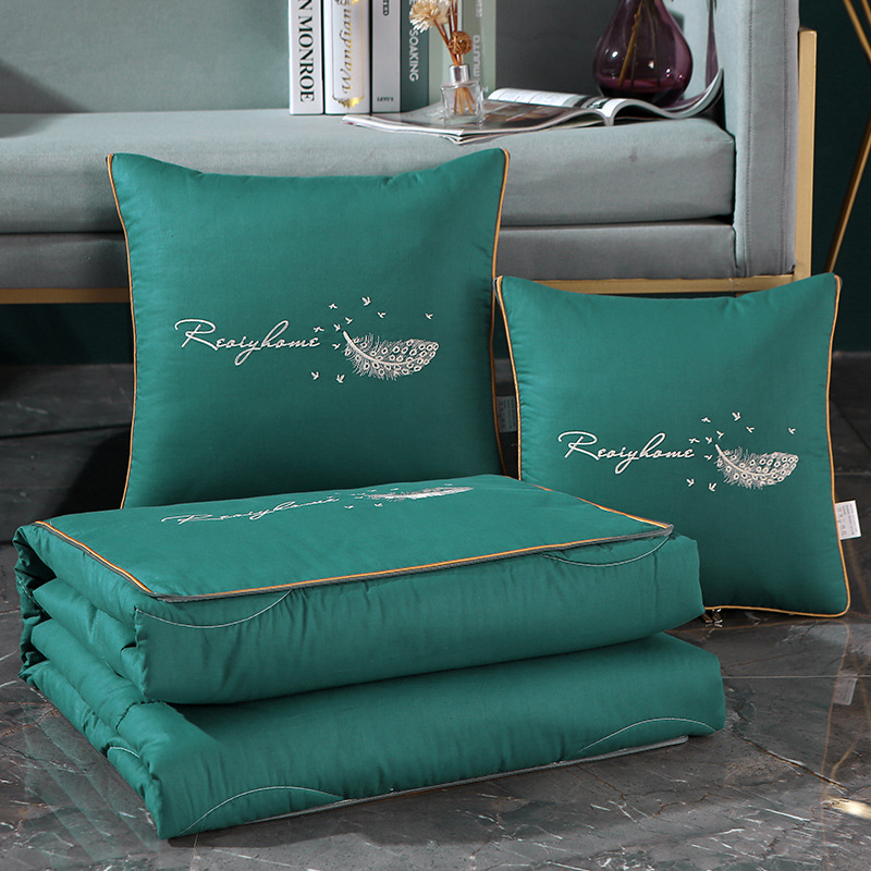 シンプルな布刺繍抱枕布団両用枕二合一の厚い正方形のエアコンは純色のクッションで覆われています。