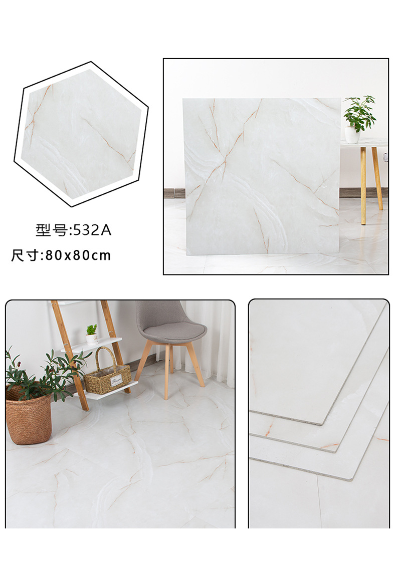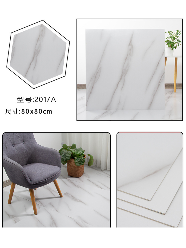 【新商品 光沢仕上げ80*80】光沢のあるタイル風床シール 粘着式床シール PVC大理石床シール