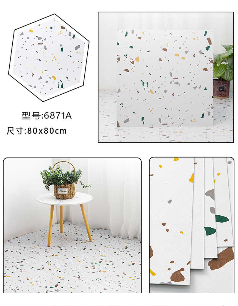 60x60床貼り1.2mm厚さ自己貼りpvc石プラスチック床厚さ厚い床貼り耐磨耗商家庭用接着剤