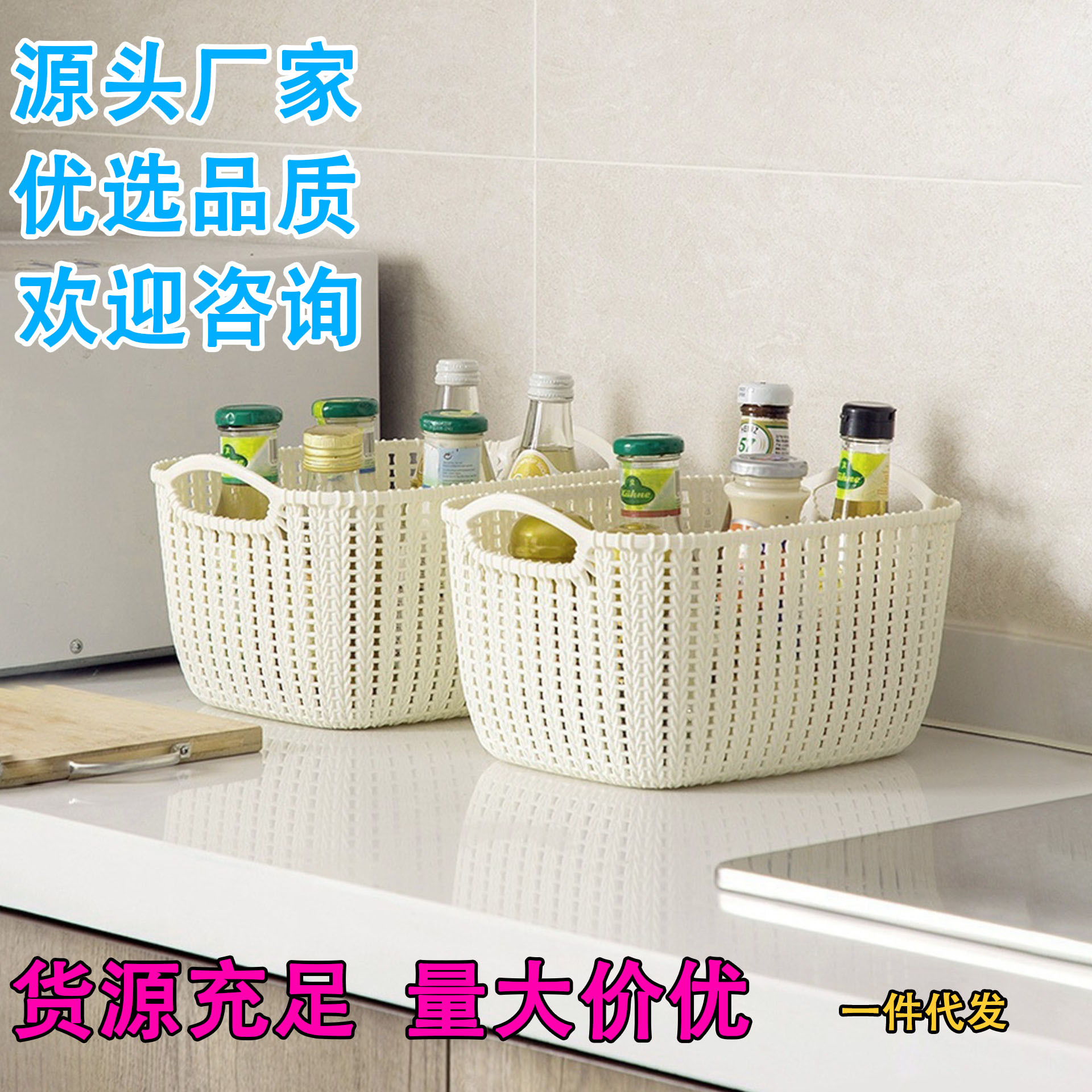 源工場は藤編みの収納かごのプラスチックバスケットをまねてかごの雑品を収納します。