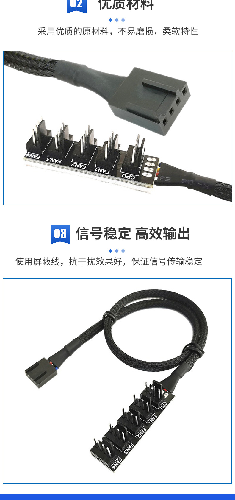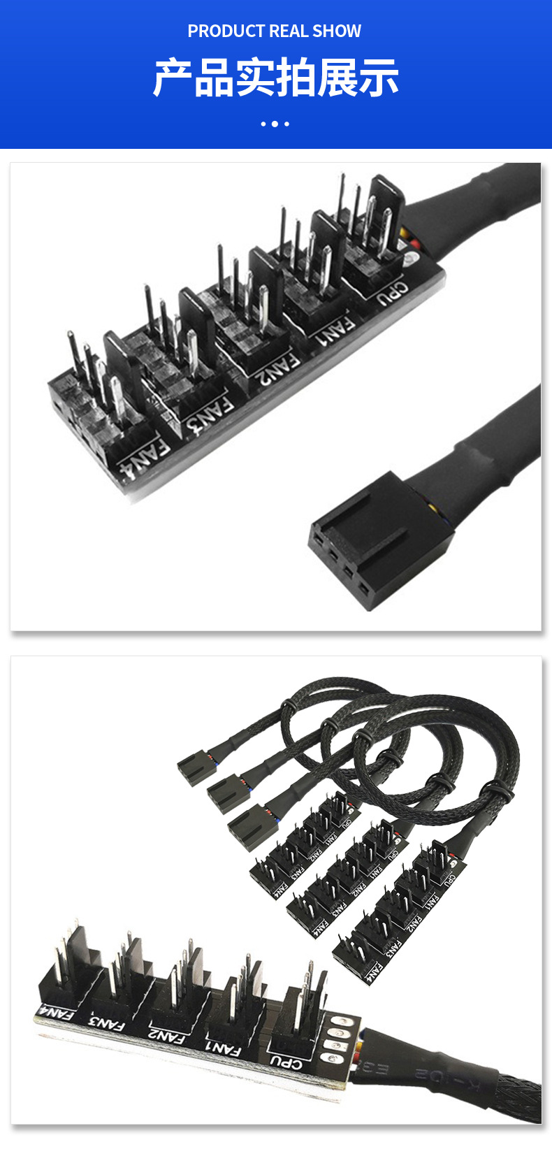 【产品作用】:使4个和5个电脑风扇共用一个4Pin接口