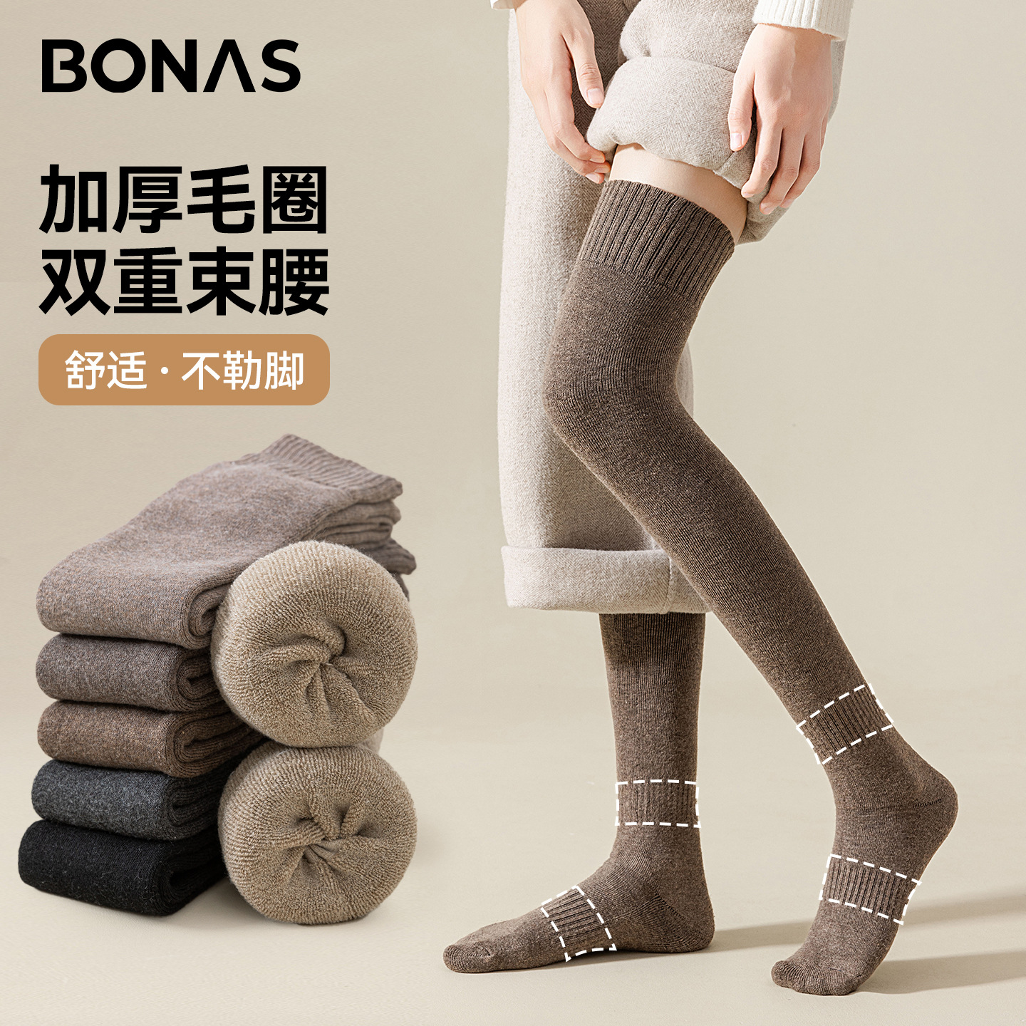 宝娜斯过膝袜子女秋冬保暖护膝大腿袜套防下滑不勒加厚毛圈长筒袜