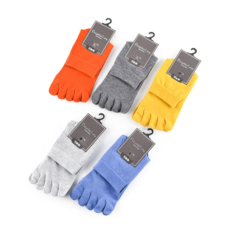 東十一のメンズ女性の中腰の五足の綿の靴下の純色の五足の綿の靴下