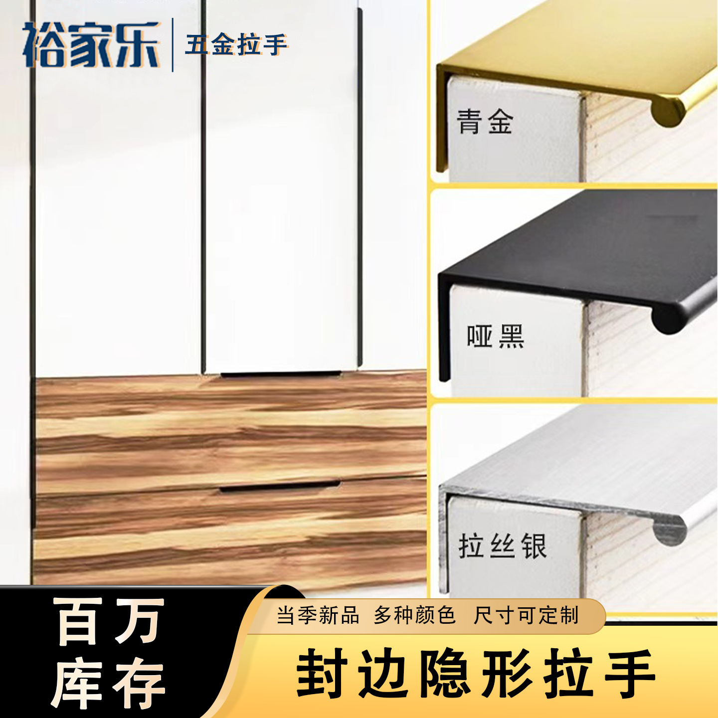免打孔暗扣弧形隐形封边太空铝长拉手太空铝合金橱柜衣柜门缝把手