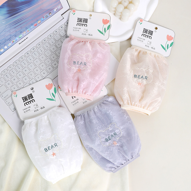 RAYA袖套女秋冬短款双层绣花套袖学生学习袖笼大人防尘网纱护袖