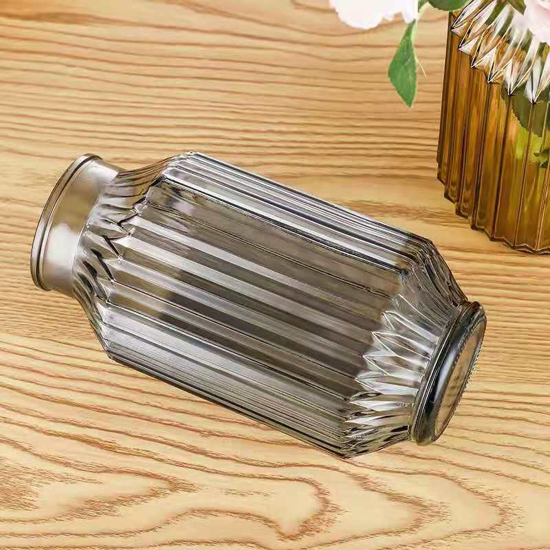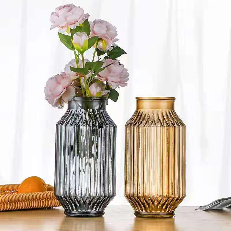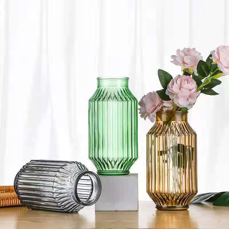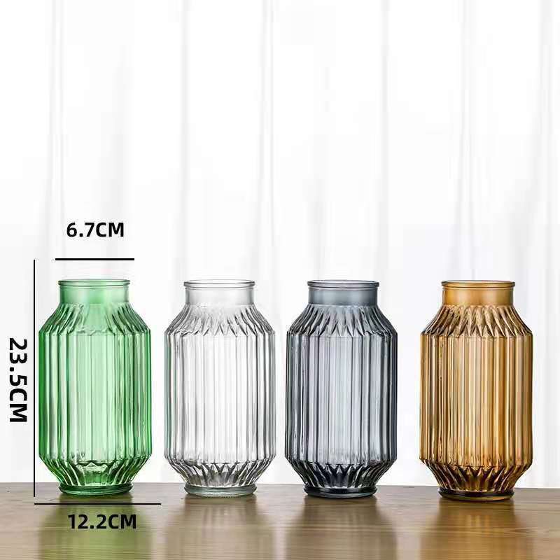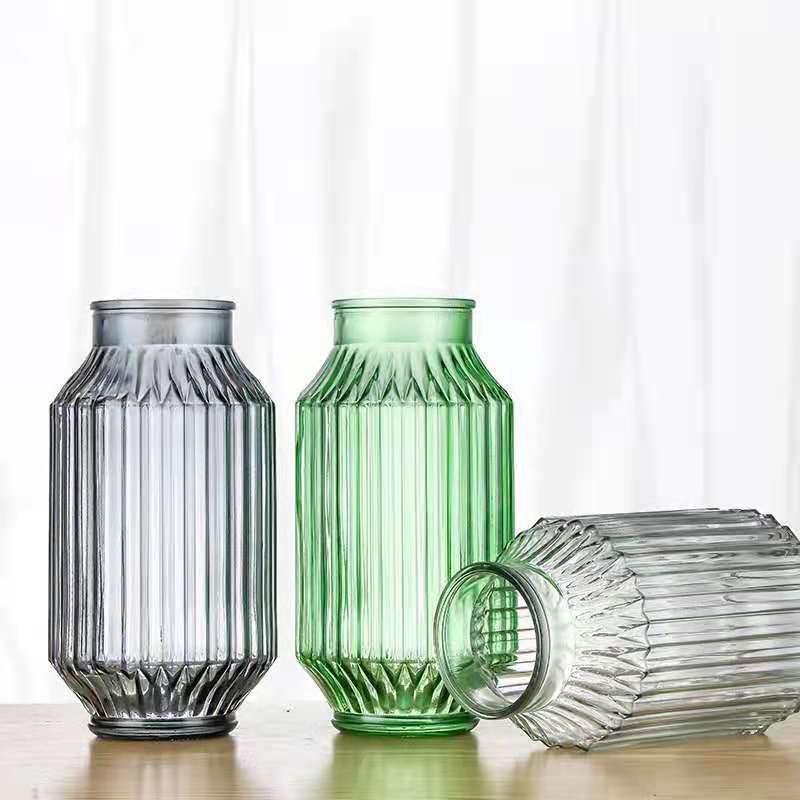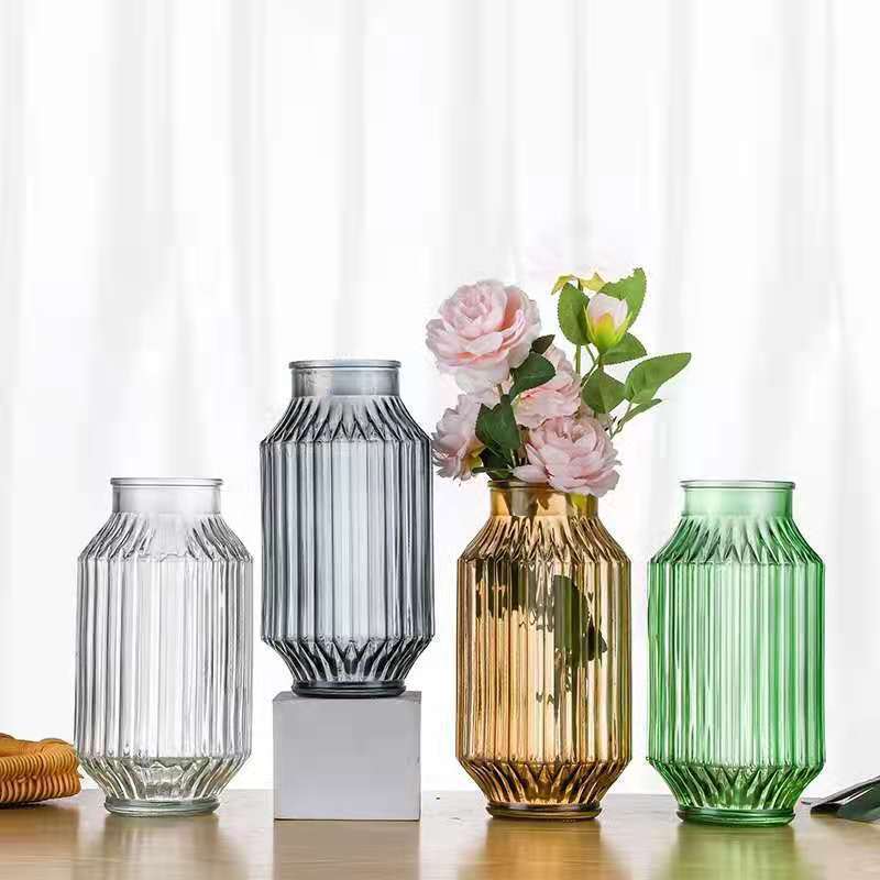 卸売ホーム装飾置物クリエイティブガラス挿し花瓶富貴竹透明水培大花器縦紋花瓶