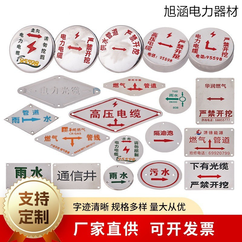 カスタマイズされたステンレス鋼の方向標識、雨水、下水、消防通信標識、電力ケーブル、ガス地面スタンピング標識
