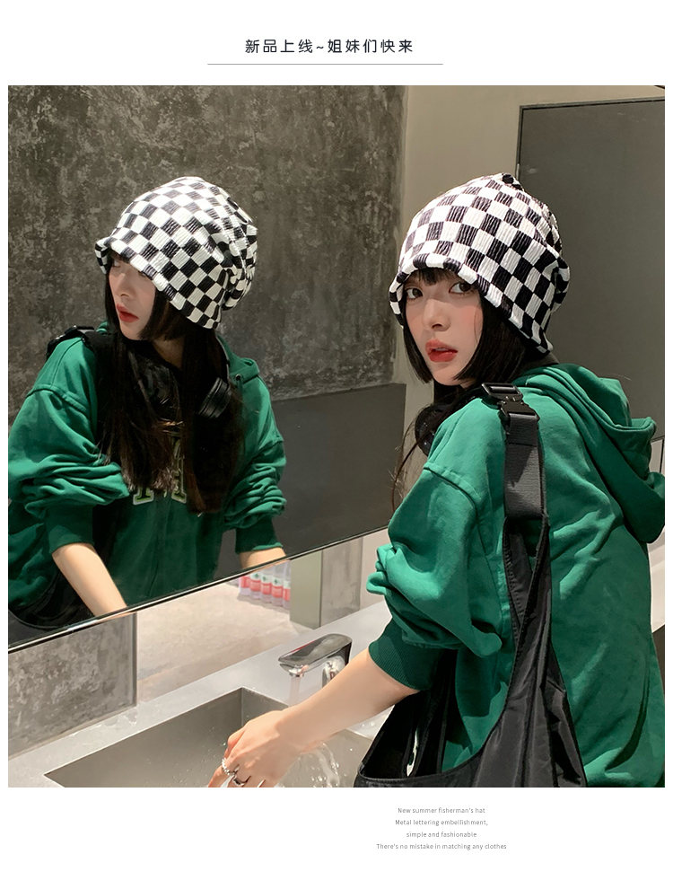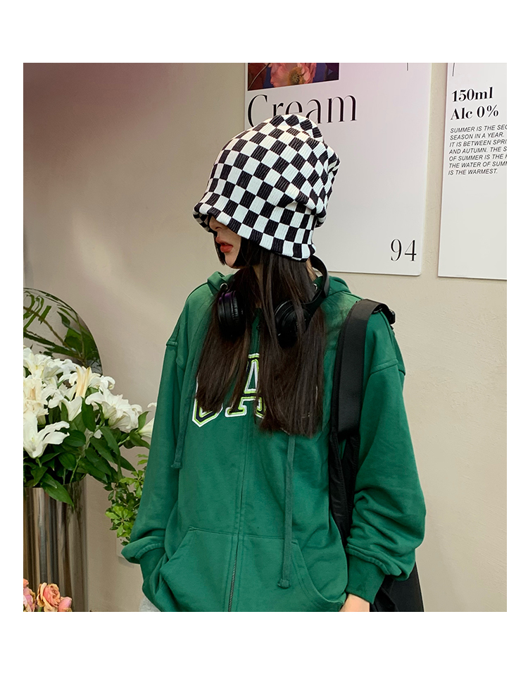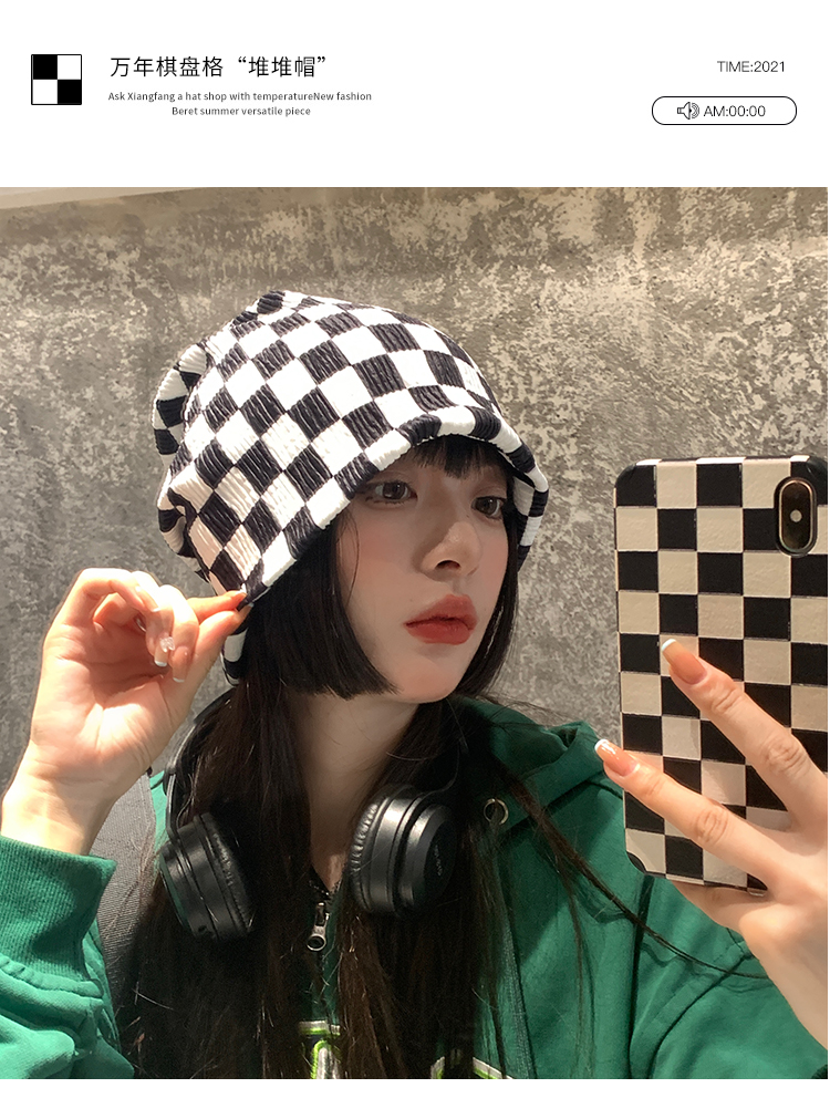 Ins碁盤の格子の山の帽子の女性の韓国版の百合のネットの赤い大衆の包頭は顔の小さい冬の冷たい帽子の月子の帽子を現します。