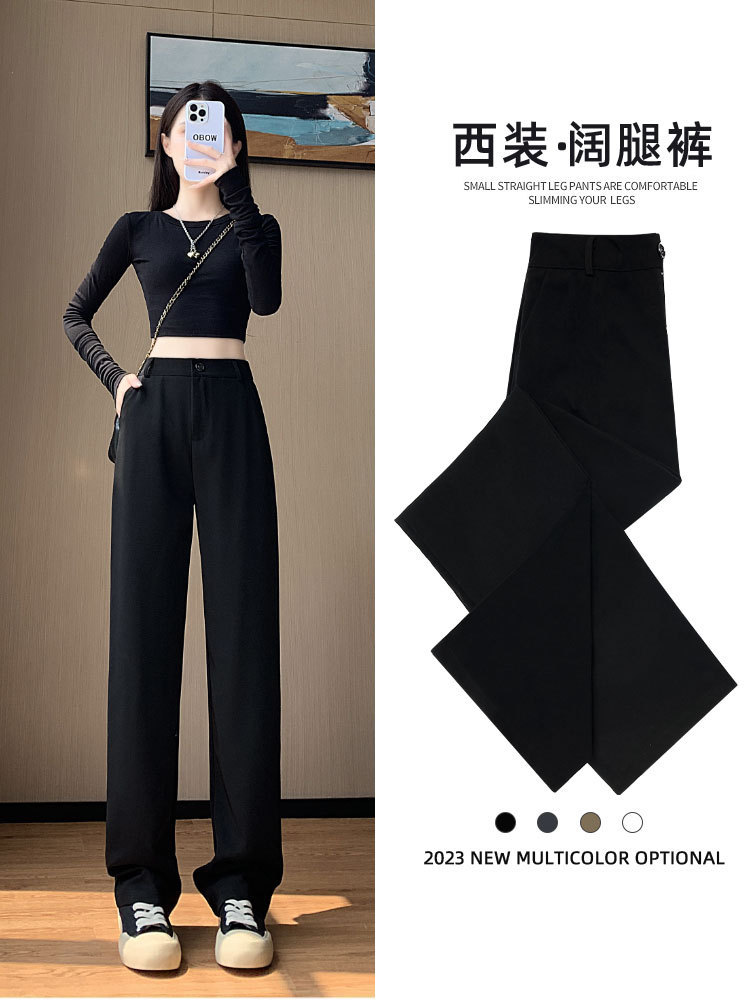 女性用の狭いワイドレッグパンツ、女性用の春と秋のドレープストレートパンツ、スリムでカジュアル、小柄な人向けのハイウエストスリムスーツパンツ