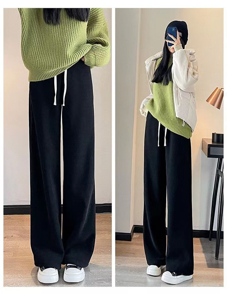 新しいズボンの女性の秋冬の加毛の学生の韓国版のゆったりしているまっすぐな筒のカジュアルな百合のスポーツのズボンの束の口の衛のズボン