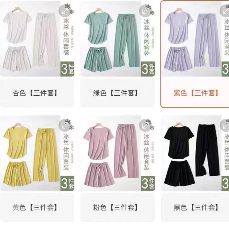 新品レディース春夏ホームウェアカジュアルパジャマセットアイスシルク3点セット着心地の良いオシャレ
