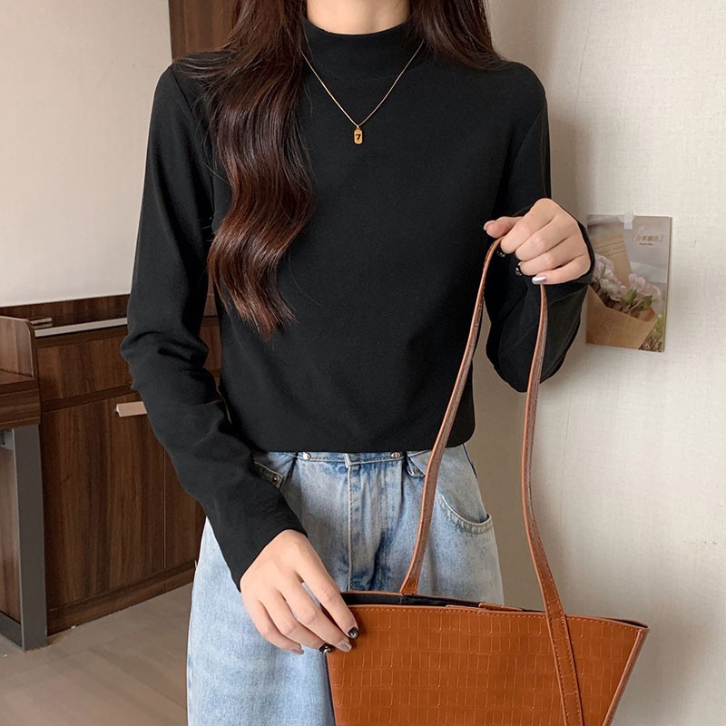秋冬の新型の徳絨毛の半高襟の底のシャツは快適に外に長袖のtシャツの保温の下着の女性の上着を着ます。