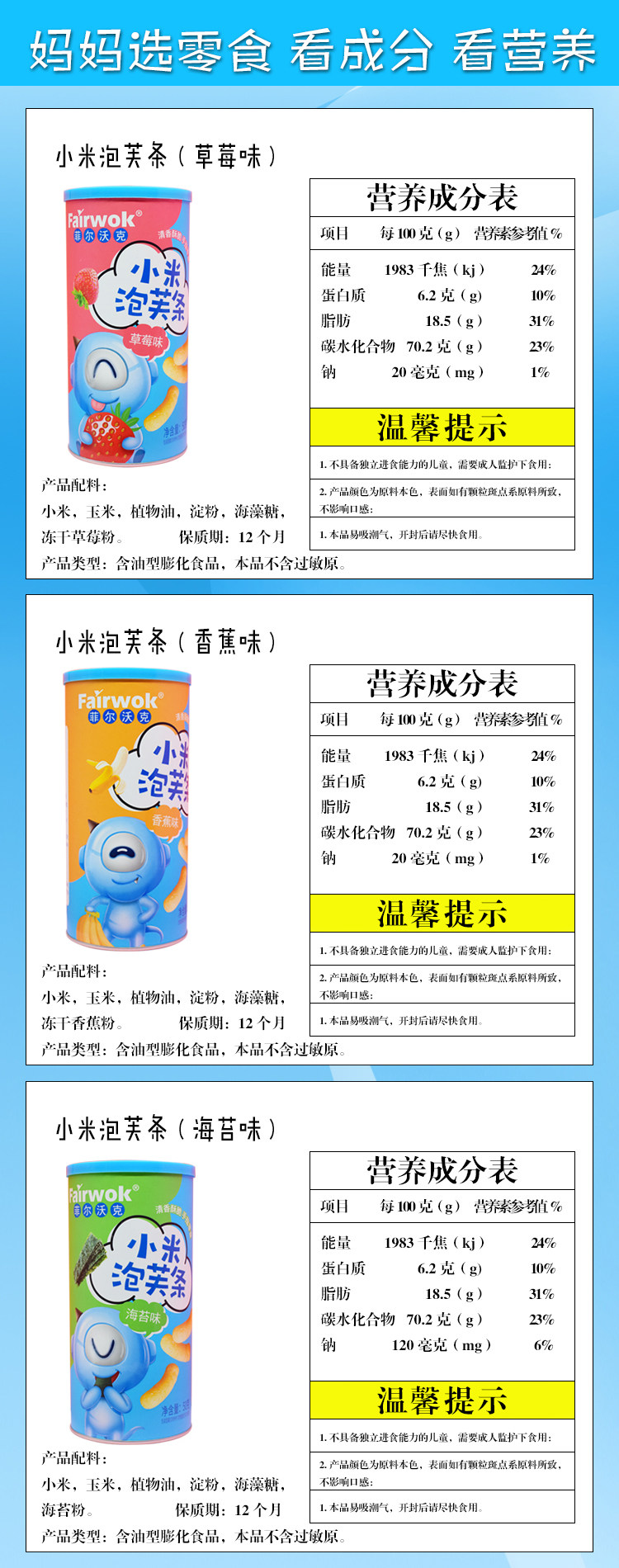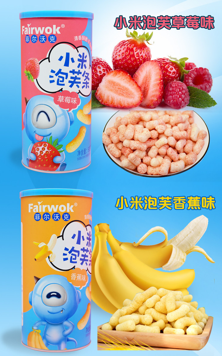 フィルウォーカーのお米のシュークリームの小さいお菓子の赤ちゃんの指のインスタントイチゴのバナナの海苔の多味のシュークリームの50グラム
