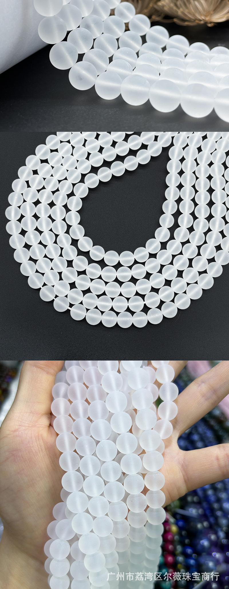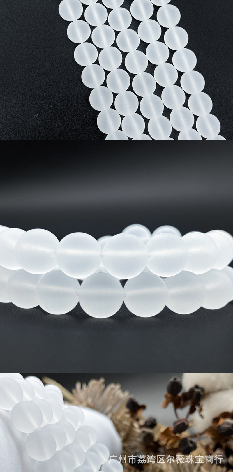 マットクリスタルガラス氷透明つや消しホワイトルースビーズ diy 半完成ブレスレット手作りラウンドビーズネックレス