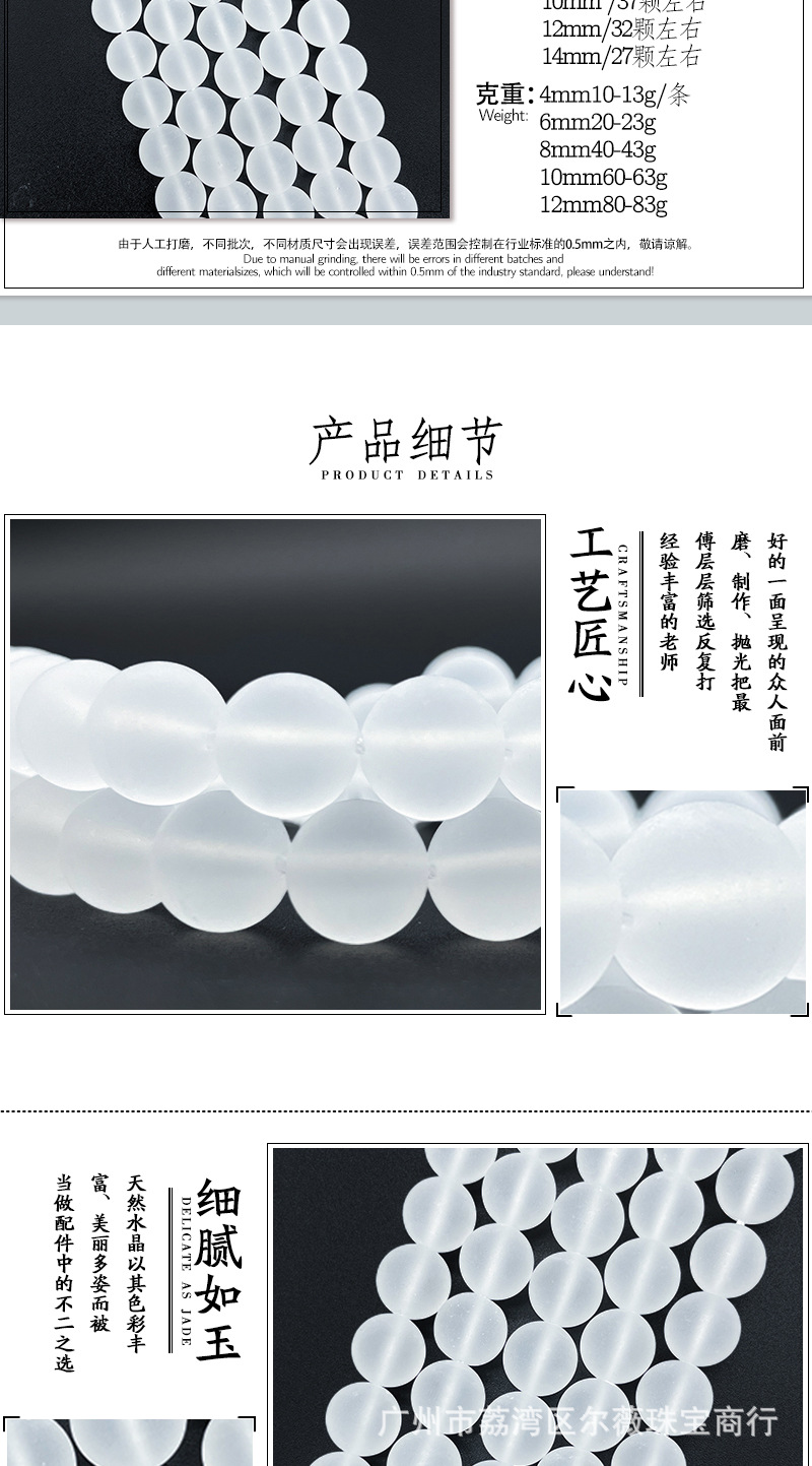 メーカー直販艶消し水晶散珠水晶玉半製品卸売りdiyビーズブレスレット
