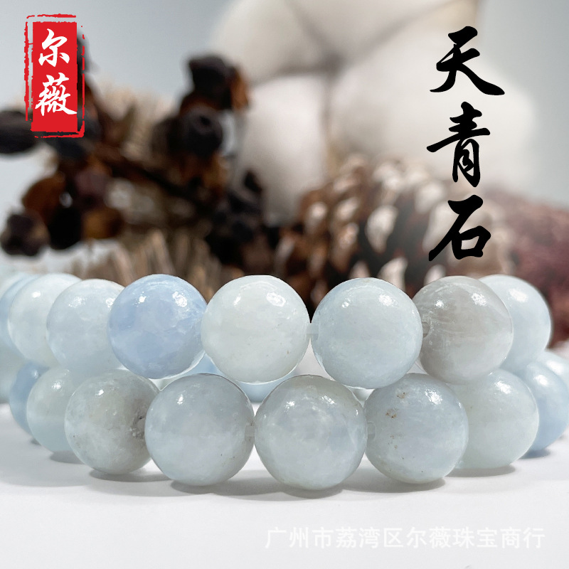 天然天青石散珠青方解石散珠ブレスレットdiy手串Celestine円珠卸売りビーズ