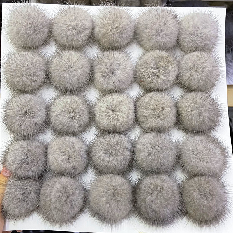 本产品是用进口水貂尾手工制作而成,毛泽光亮,圆而丰满。是理想的服装饰品辅料。大小规格按客户所需并根据客户的色卡染色定做。毛球后加有皮筋圈,也可根据客户要求加毛毡片等具体需跟客服谈,自行备注不可。