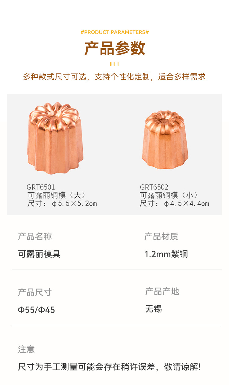 愛楽培フランス銅型可露麗金型フレンチデザート可麗露銅型ケーキムース布丁杯カード蕾