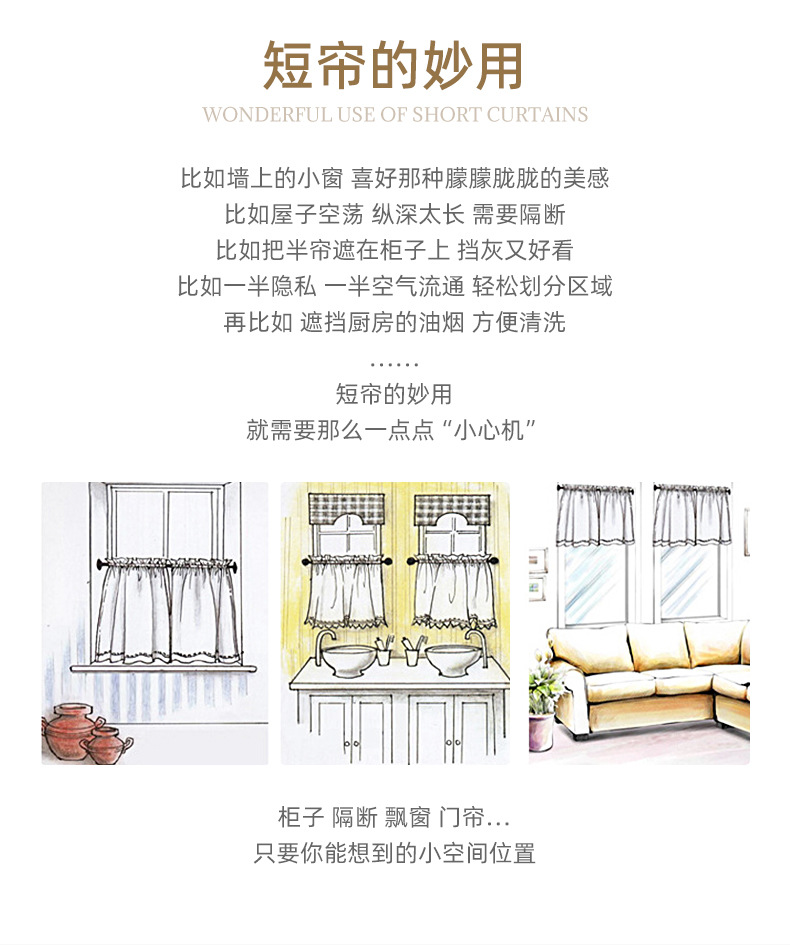 着棒両面無光小カーテン防水日よけカーテンカーテン半カーテンコーヒーカーテンキッチン洗面台キャビネット