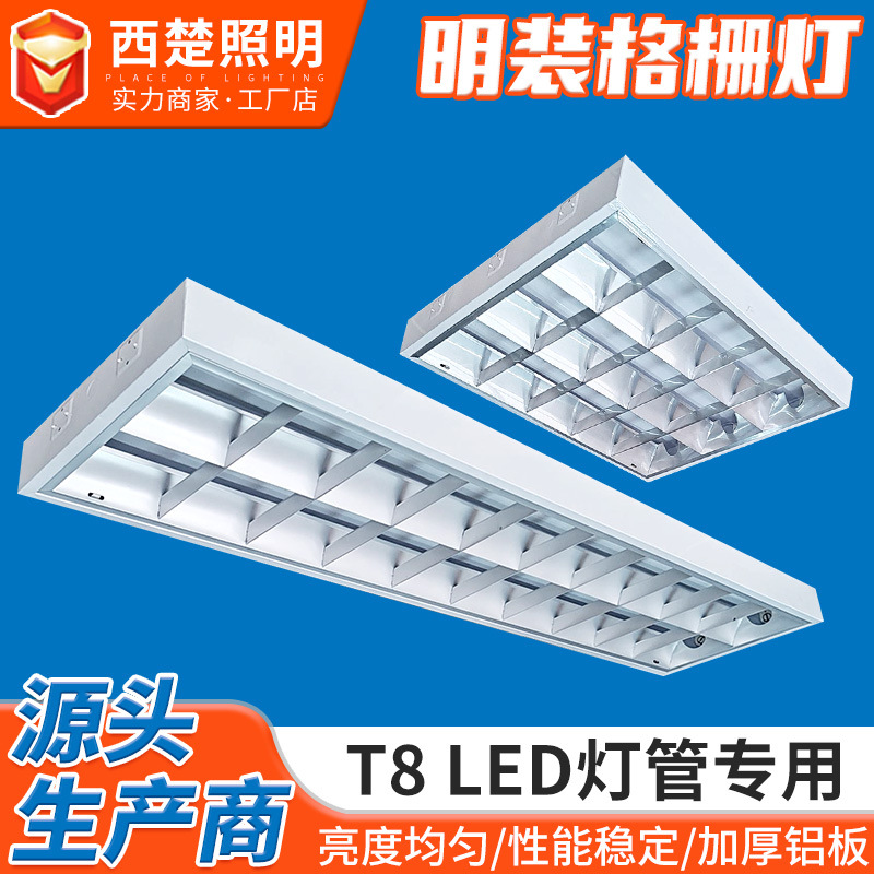 明装グリルライトディスクT8吸頂装吊りLED明装グリルライト二重管三管倉庫スーパー照明灯