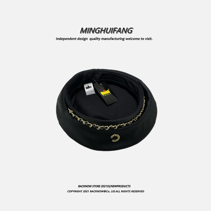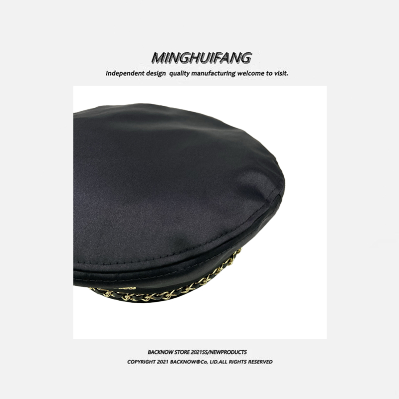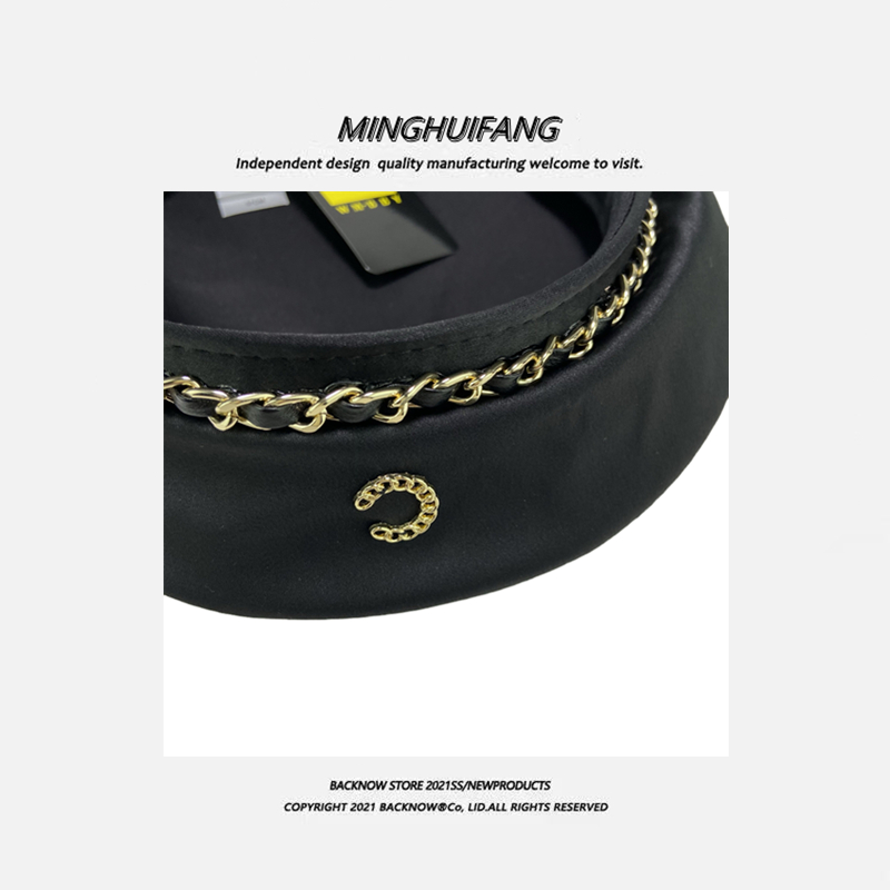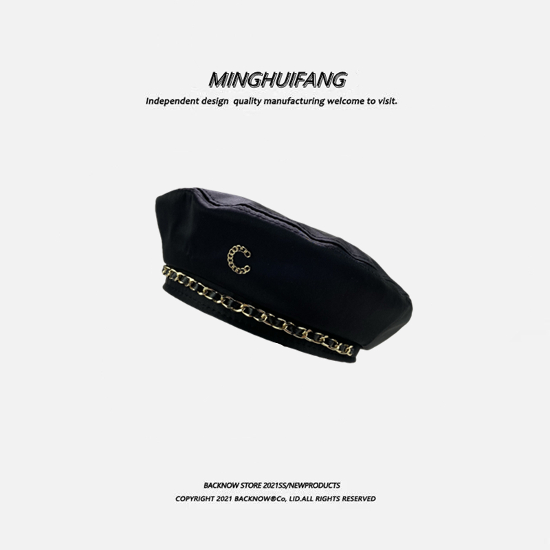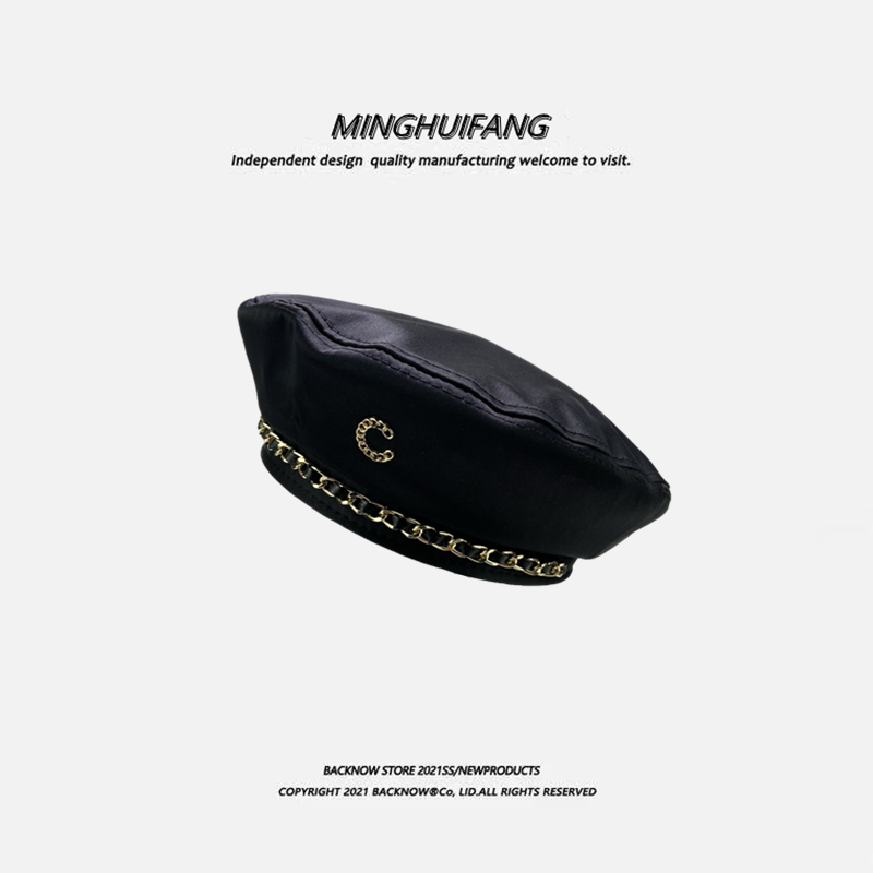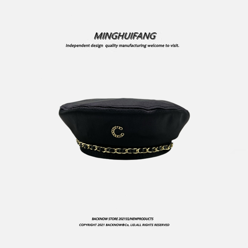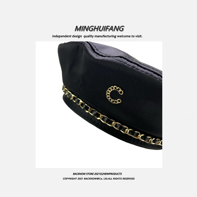 Cのアルファベットのチェーンはやせています。平頂のベレーの帽子は海軍の帽子をつなぎ合わせます。