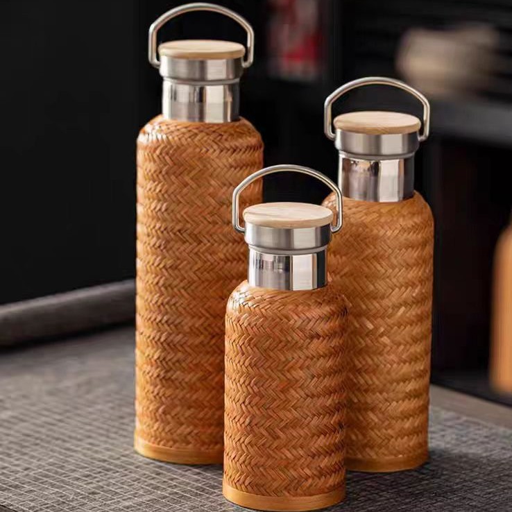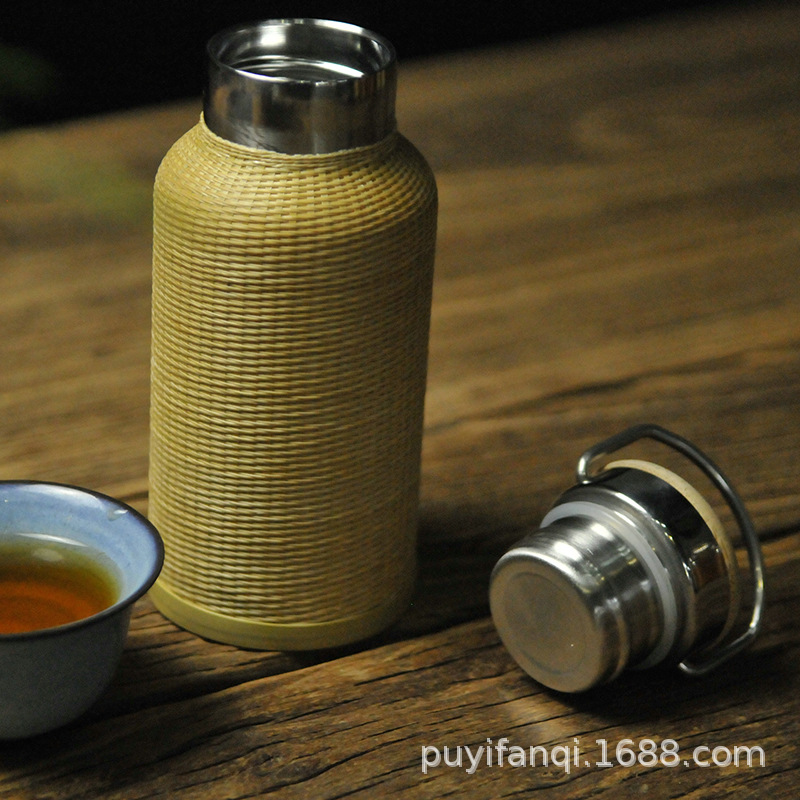中国式竹編み保温カップ大容量ステンレスポット旅行ポータブルカップ屋外温水ボトル