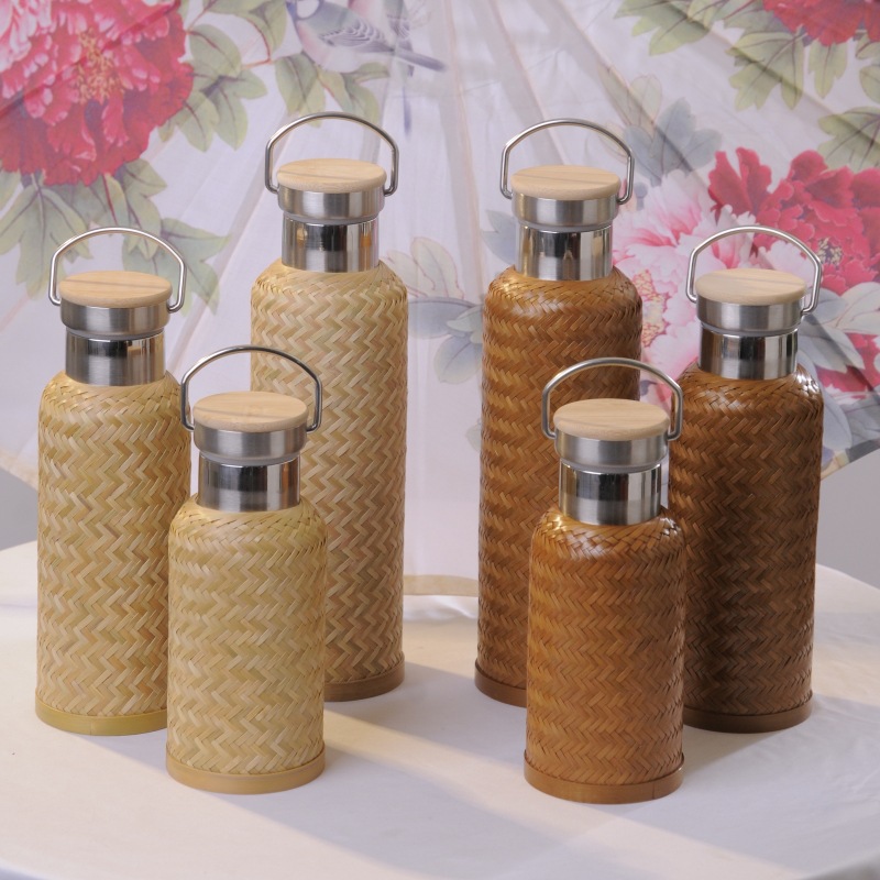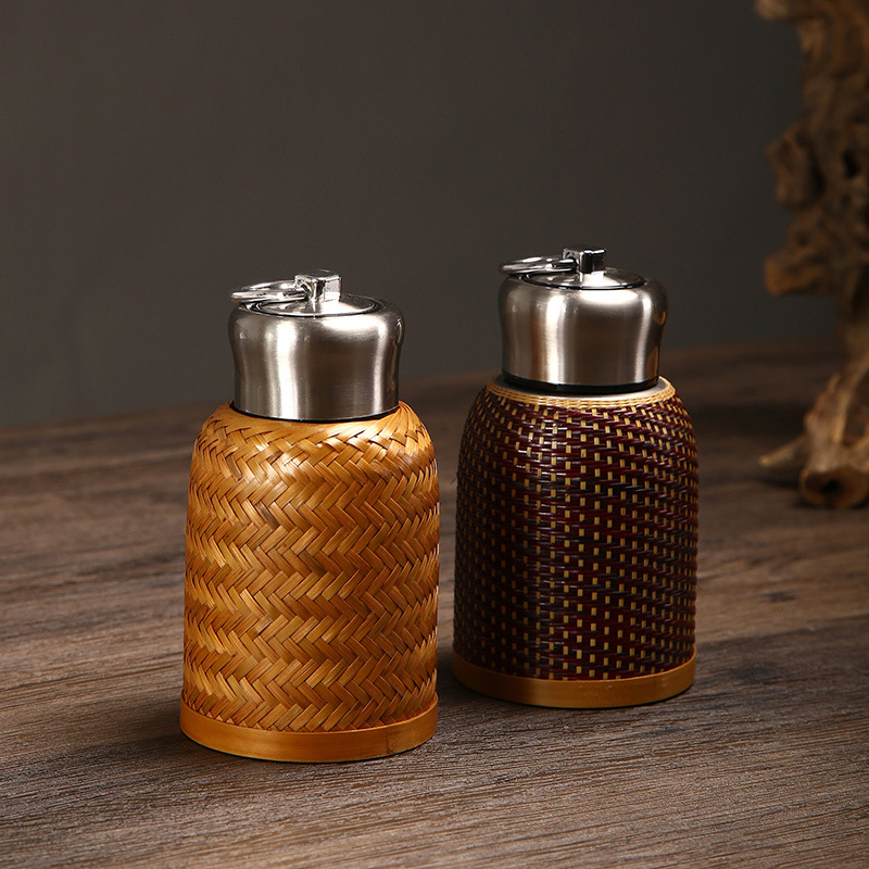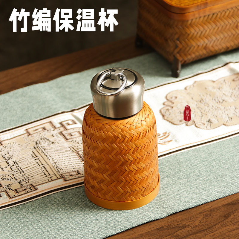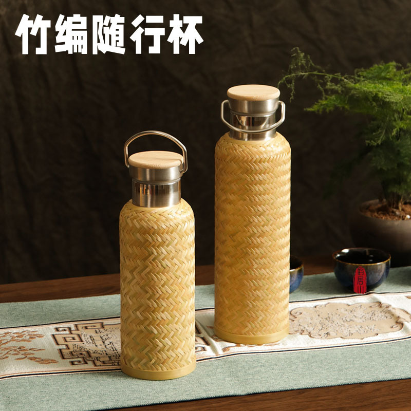 竹編み水杯ステンレス保温カップ水筒創意旅行携帯茶カップ旧式レトロ小型魔法瓶