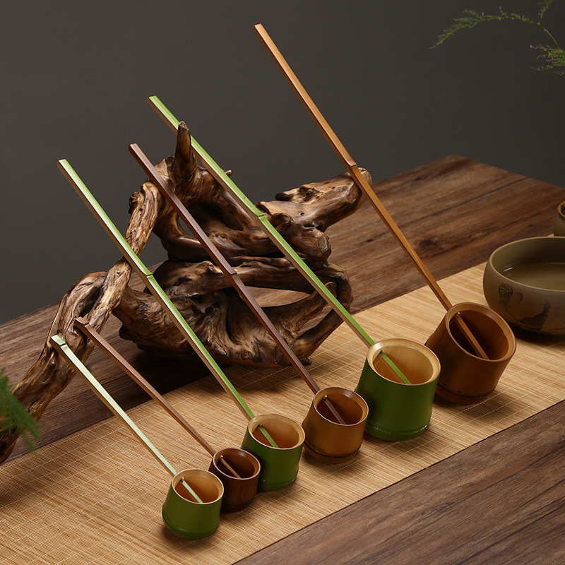 竹製の日本式の水のスプーンのお茶のスプーンは花の水のスプーンの長い柄に水のスプーンを分けます。