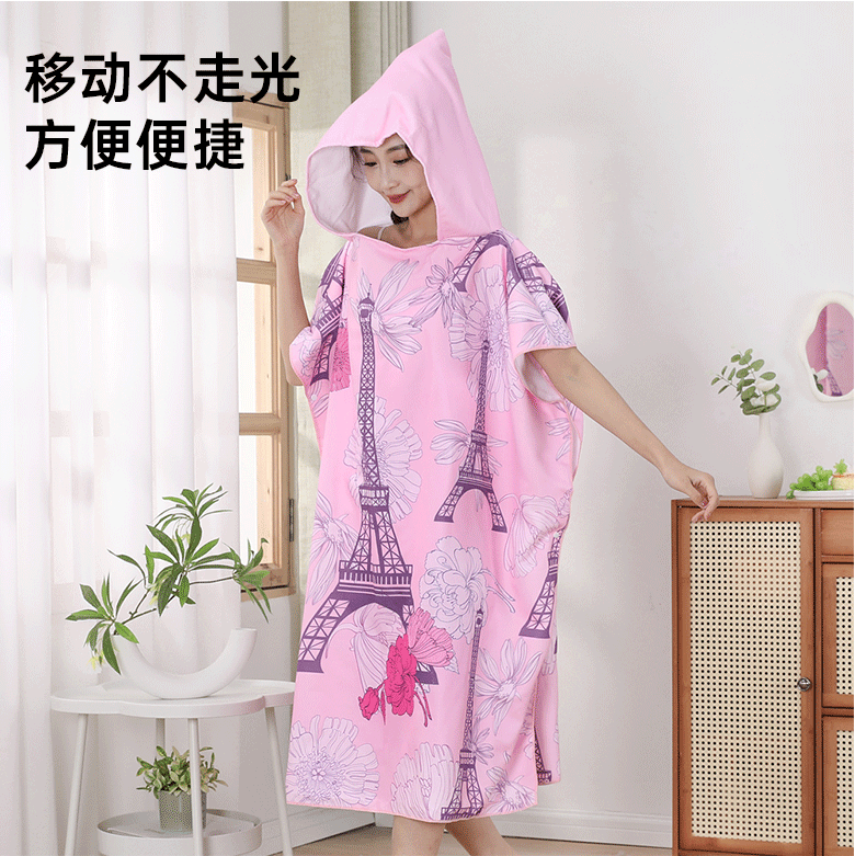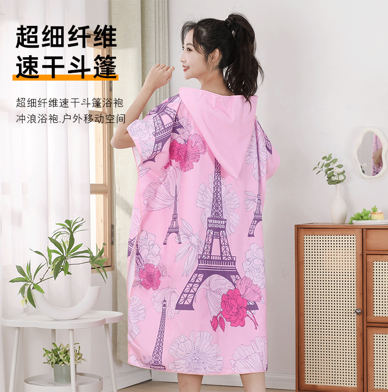 バスローブ水泳速乾マント女性フード付き開襟バスタオル携帯可着式バスローブ運動潜水ビーチタオル