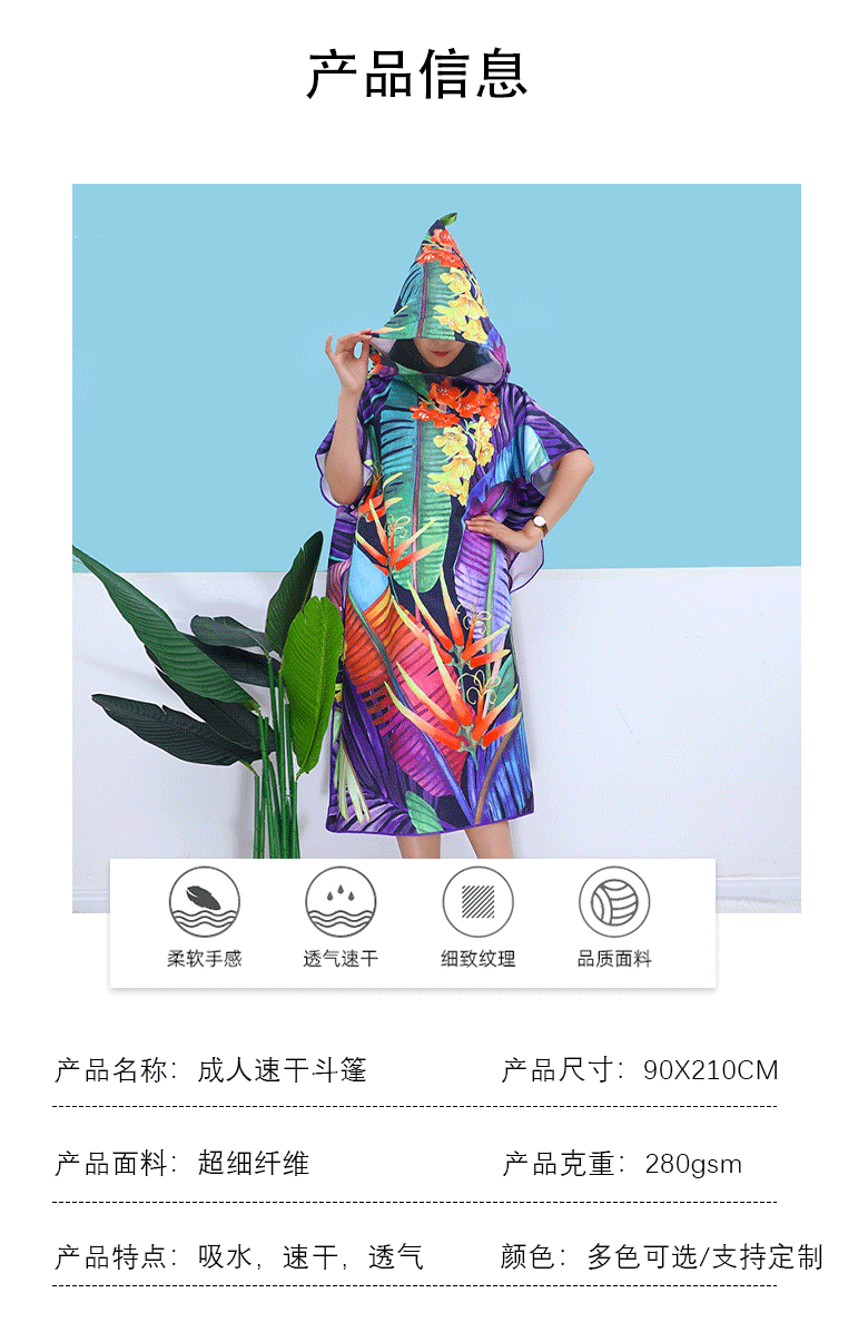 バスローブ速乾水泳運動バスタオル開襟マントは成人潜水運動日焼け止めバスタオルA012を着ることができる