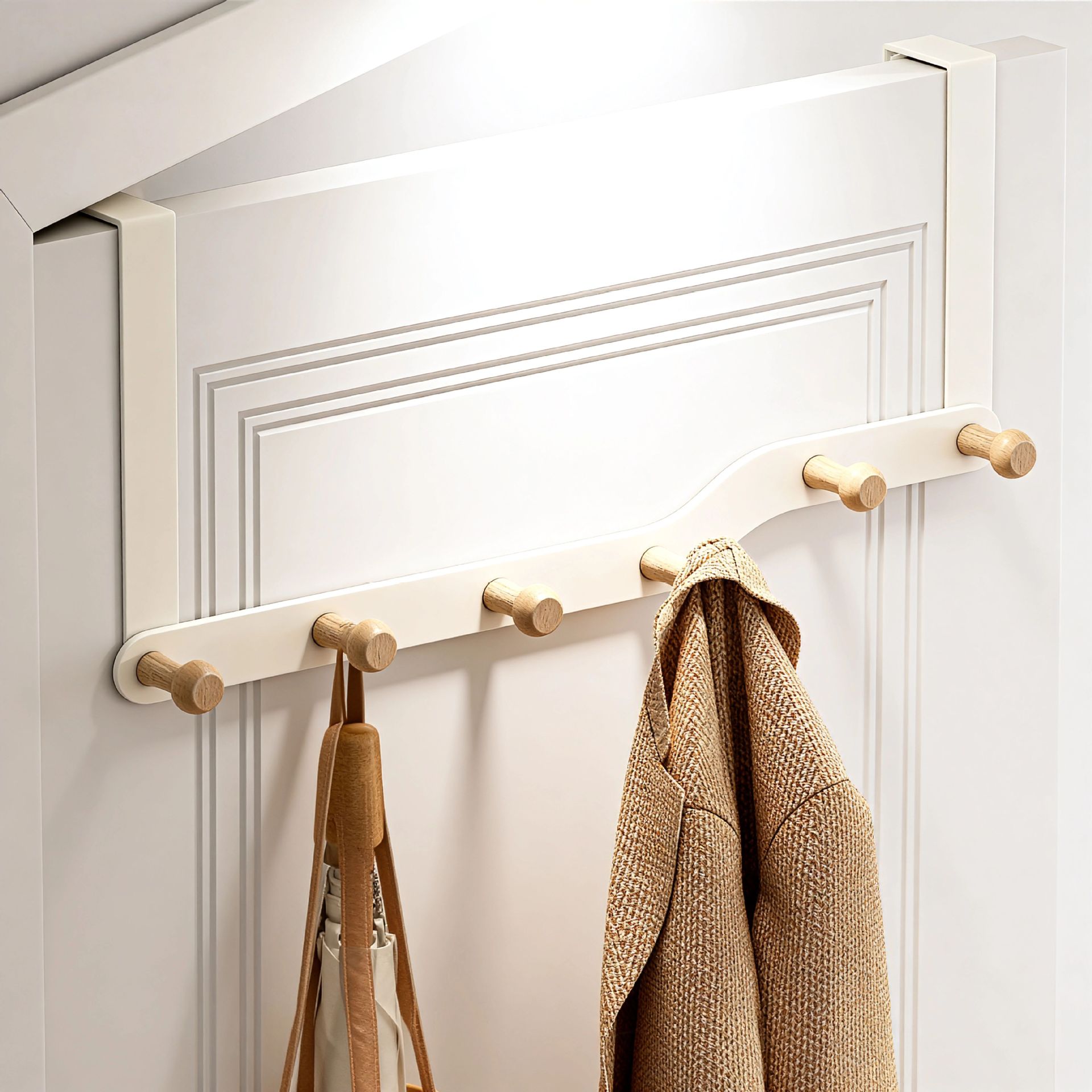 複数列のドアバックフック、穴を開ける必要なし、鉄と木製、クリエイティブな寝室収納整理、ドア掛けハンガー、バスルーム用衣類ハンガー