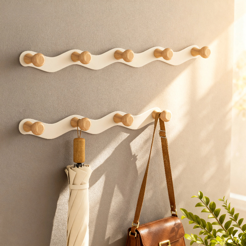 ヨーロッパとアメリカの国境を越えた人気の取り外し可能なフック壁無垢材ハンガーリビングルーム二列洋服フッククリエイティブ寝室粘着フック