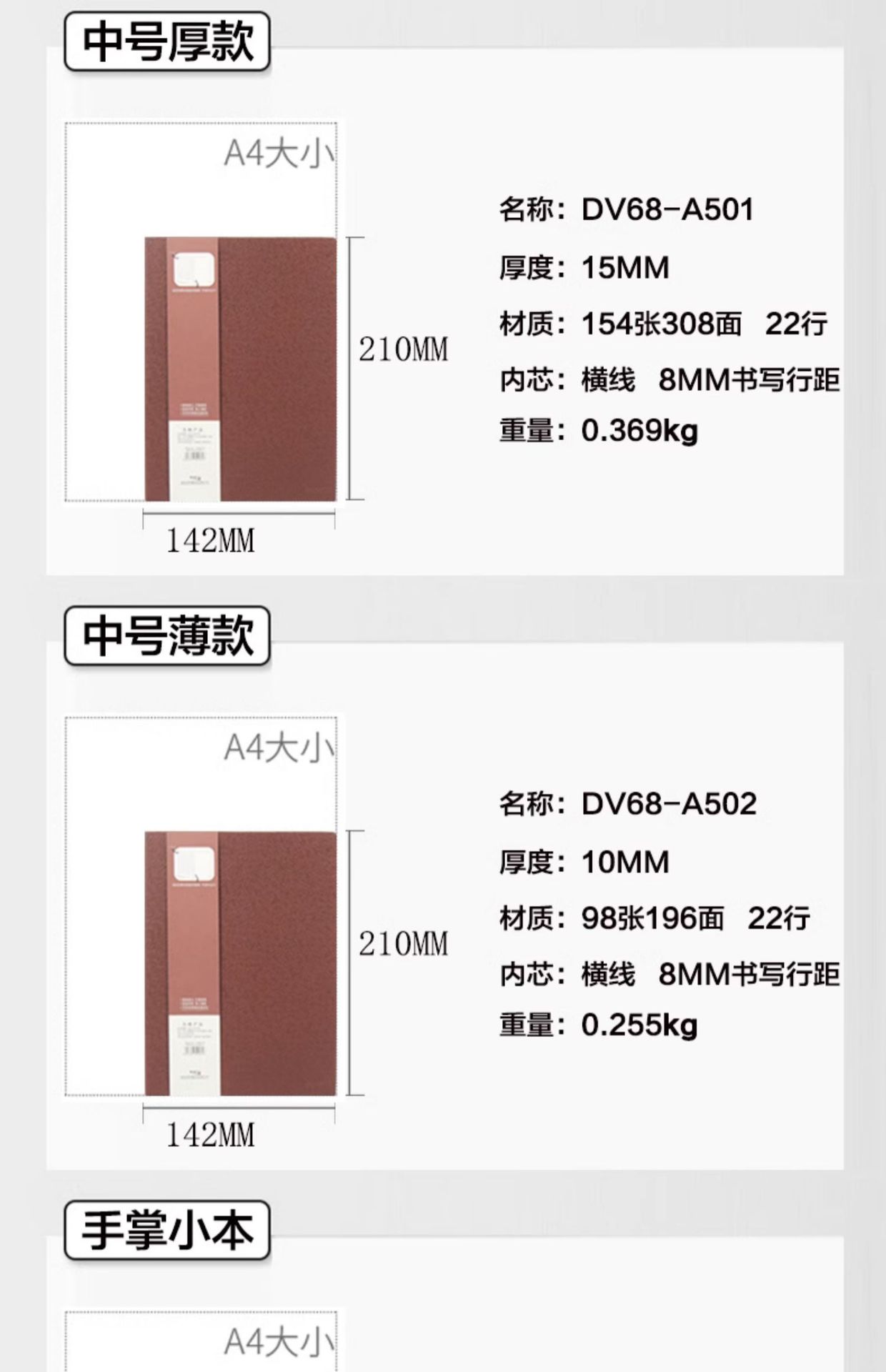 仕様 B5ノート DV68-B501,A5ノート DV68-A501,A5ノート DV68-A502,A6ノート DV68-A601