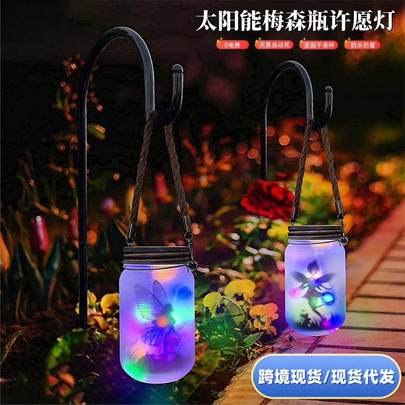 太陽エネルギー灯屋外メイソン瓶灯夜市に屋台の雰囲気灯を並べて木の夜灯を掛けて防水して庭の花園灯を飾ります。