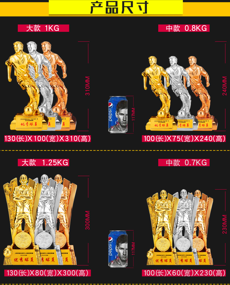 外国貿易ワールドカップ ゴールキーパー賞トロフィー メッシとロナウド シューター賞 フットボール賞モデル サッカー試合記念品