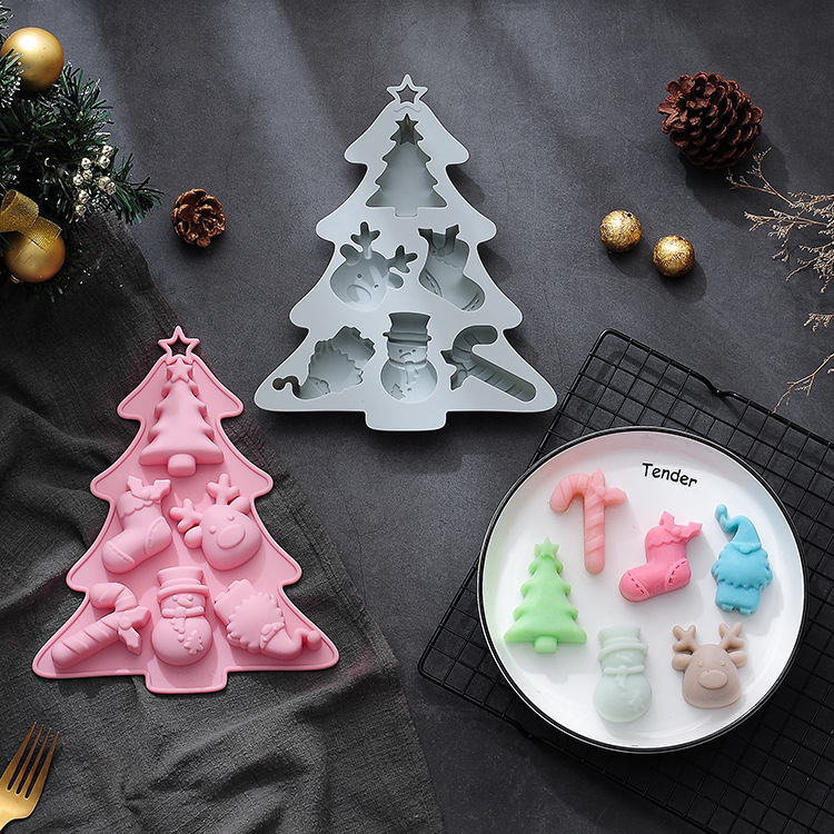 現物6連クリスマスツリーシリカゲルケーキ型diyクリスマスプレゼントチョコレート焙煎ツール滴金型