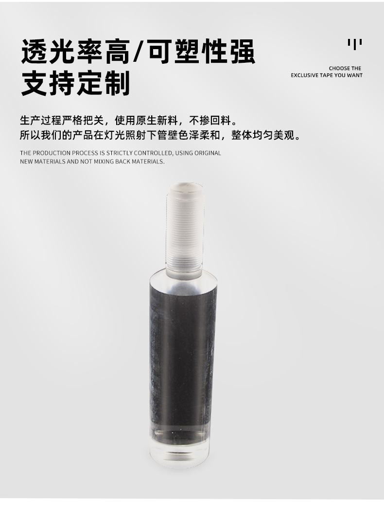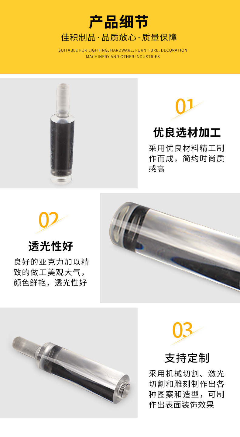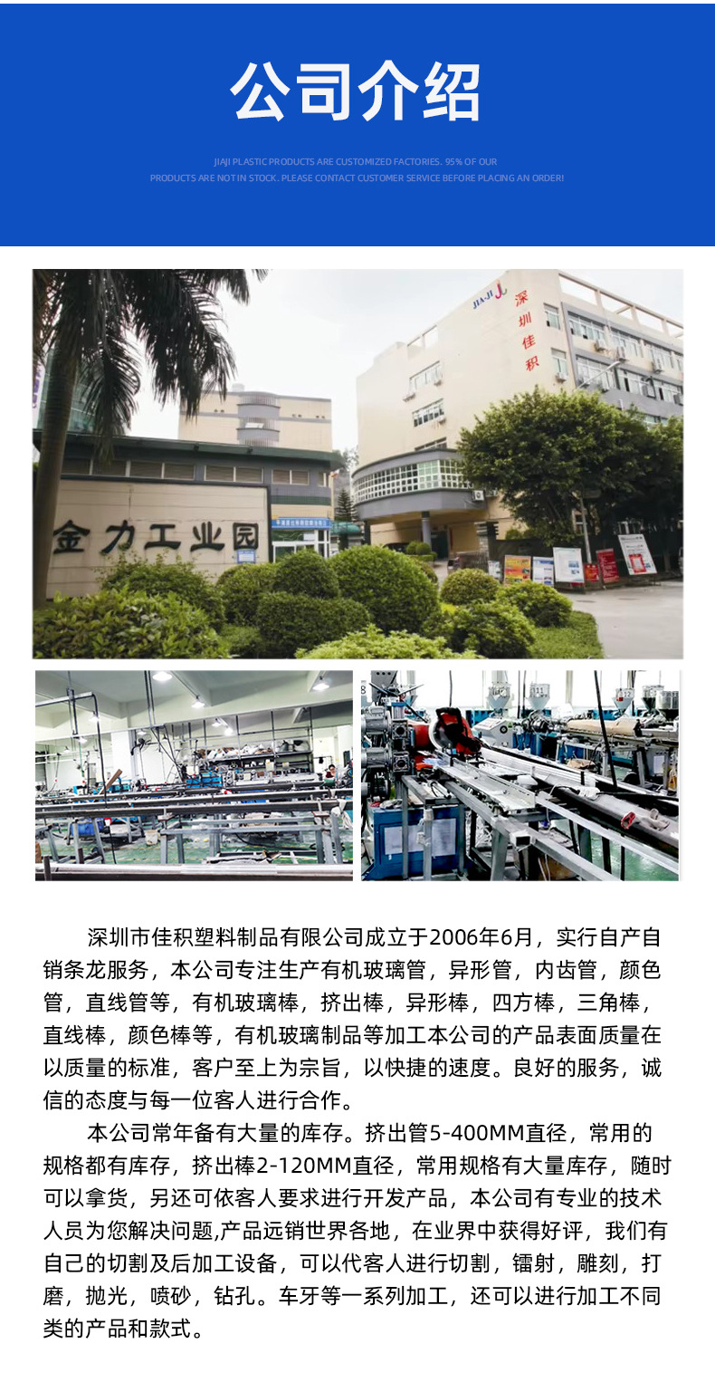 メーカーは透明な円筒形アクリル管、カット可能な有機ガラス管、カラーのアクリル管を供給しています。