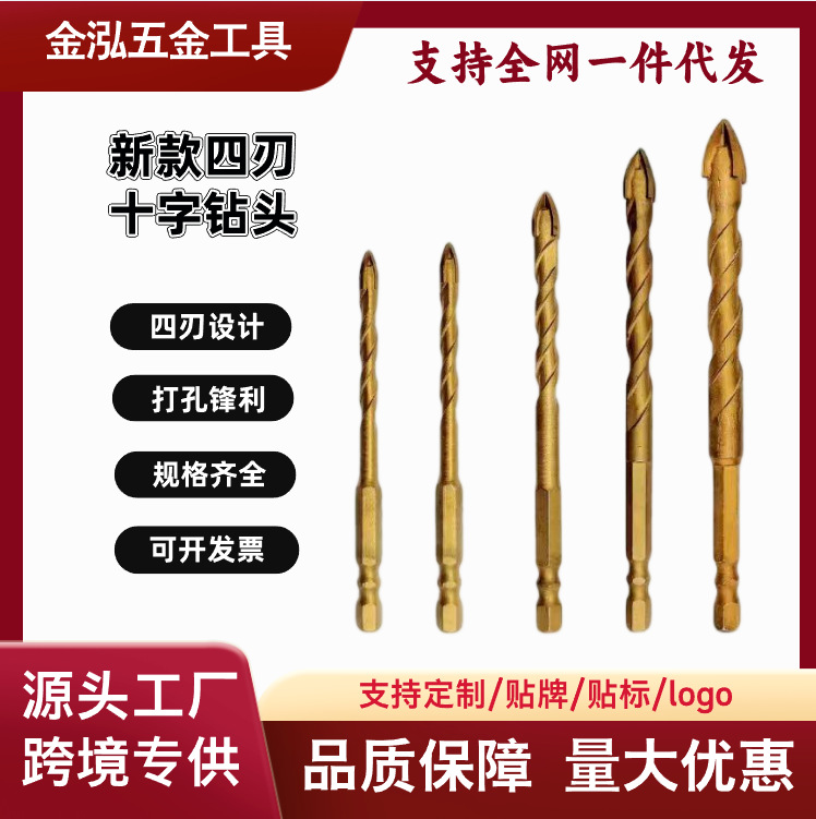 タイル用四刃長十字ドリルビット、全磁器、ガラス、セラミック、大理石、コンクリート、セメント壁の穴あけ用