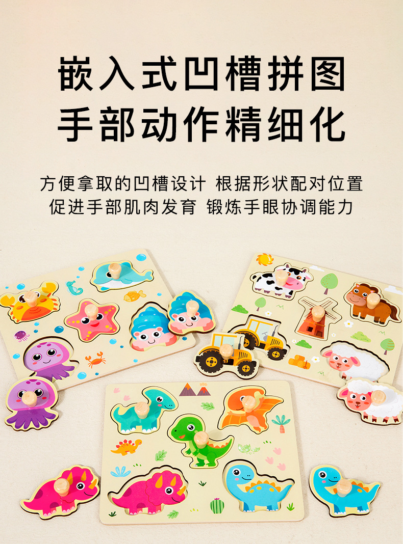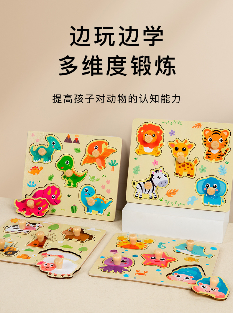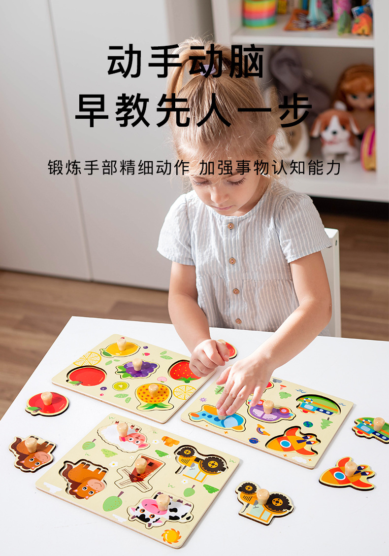 木製漫画立体パズル幼稚園の赤ちゃんの益智早教啓蒙玩具子供の木製カードの組み合わせ