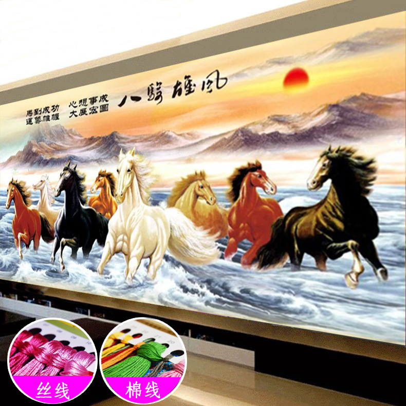 モナリザ十字刺繍馬が成功した流水生財旭日東昇八駿雄風財源があふれている刺繍図