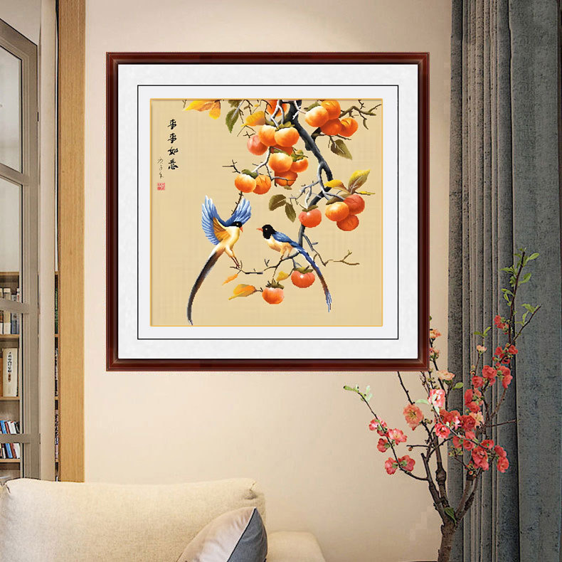 万事如意柿十字刺繍2025新型客間レストラン玄関新中国式ひょうたん福字簡単新人