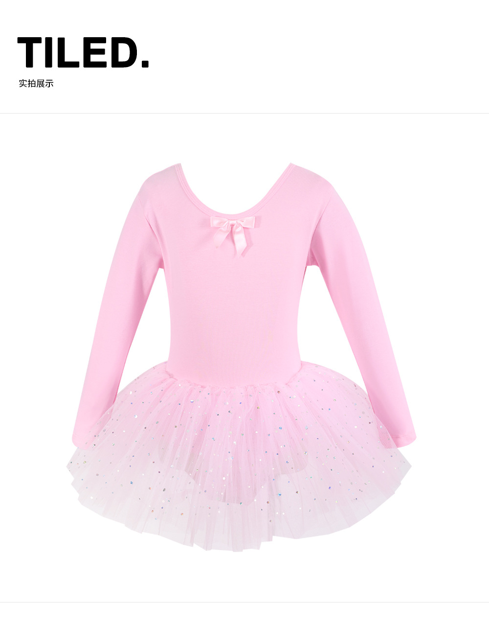 子供ダンス服春秋長袖ワンピース幼児バレエスカート女の子演出ダンス練習服