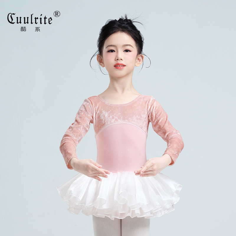 純綿子供ダンス服秋冬女の子バレエスカート少女練習服中国舞踊ピンク長袖ガーゼスカート