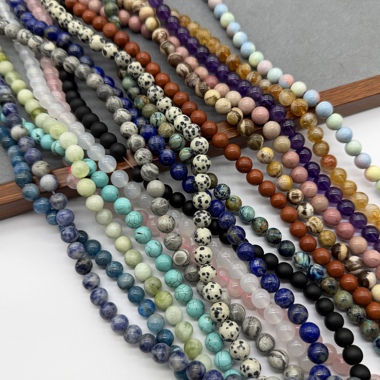 跨境热卖8mm天然石水晶圆珠子串珠紫水晶虎眼石东陵玉8mm圆珠石头