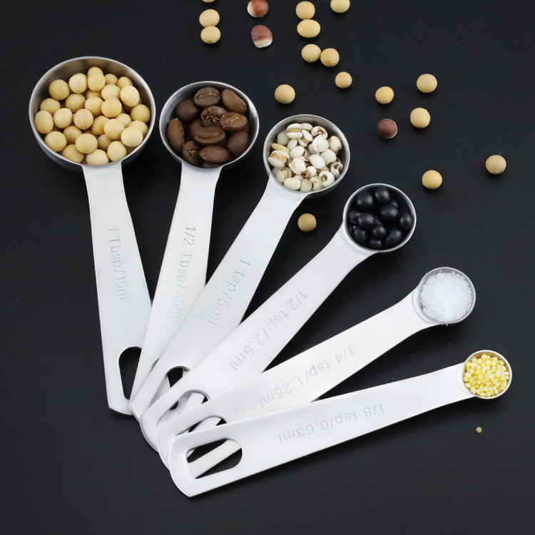 陽江工場は5個セットの計量スプーン、ステンレス製、目盛り付き、ベーキング、グラム単位、コーヒー、粉ミルク用計量スプーンを供給しています。