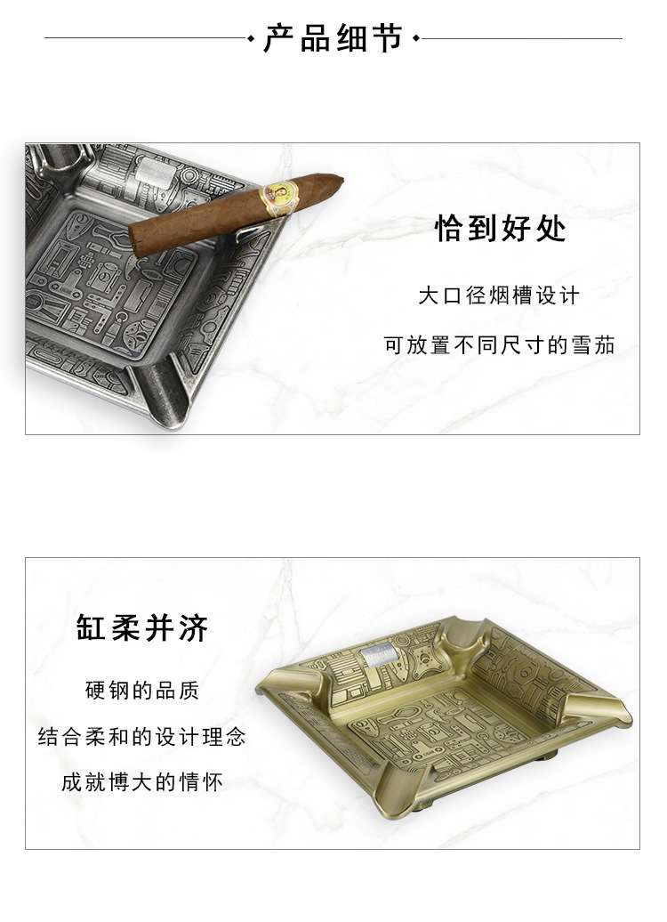 Jifeng季節風シガー灰皿大口径煙槽創意贈り物銅金属模様彫刻家庭用灰皿