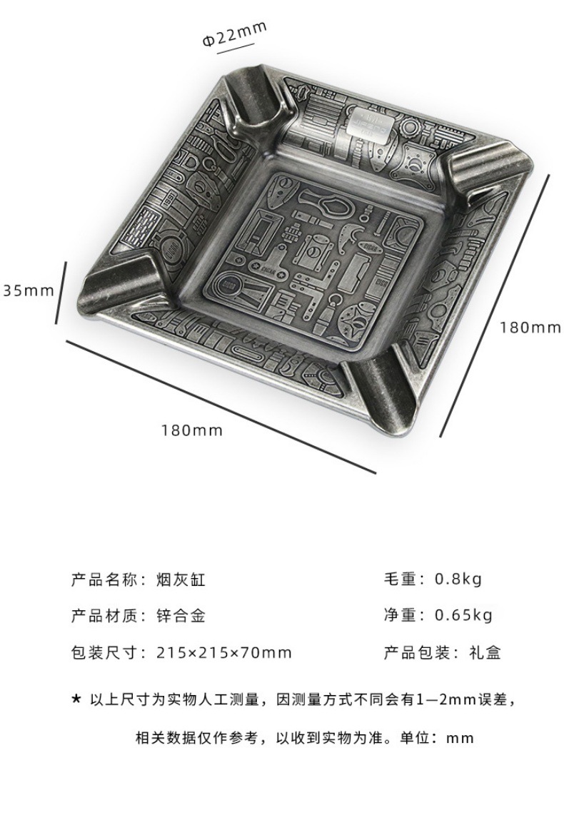 JIFENG季節風シガー専用灰皿ポータブル金属トレイ家庭用クリエイティブ灰皿煙トレイ穴あけ器