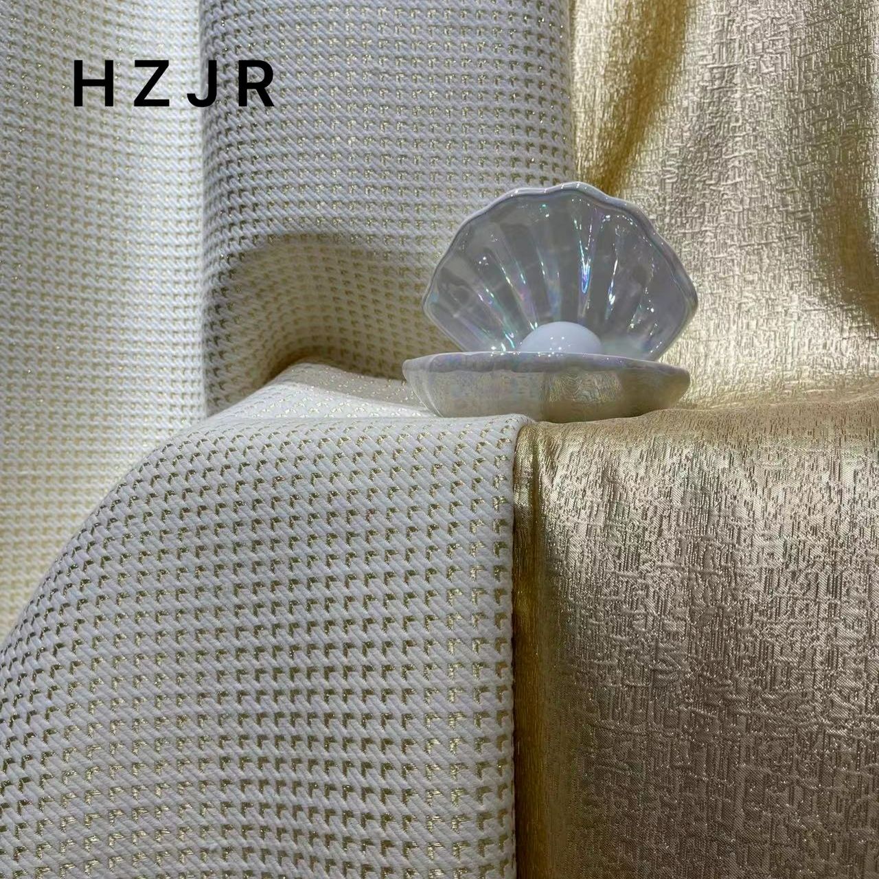 源工場の家庭用紡績家が金色の千鳥格のカーテンを飾っています。