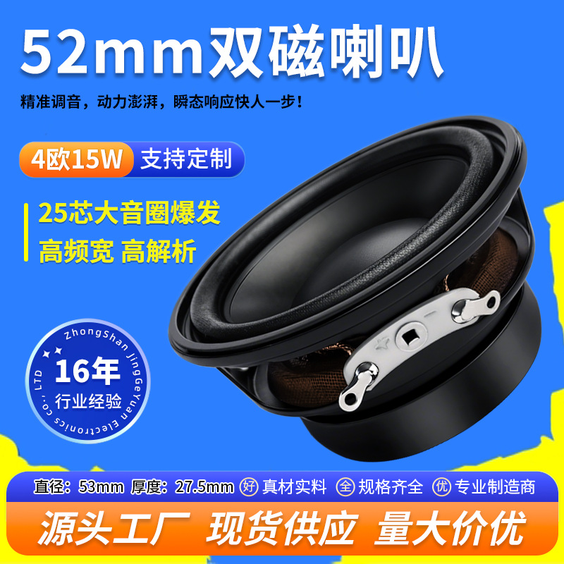 精歌源 丸型52mm 2インチ 25コア 高級スピーカー デュアルマグネット 4/8オーム 15W 人工知能スピーカー